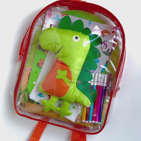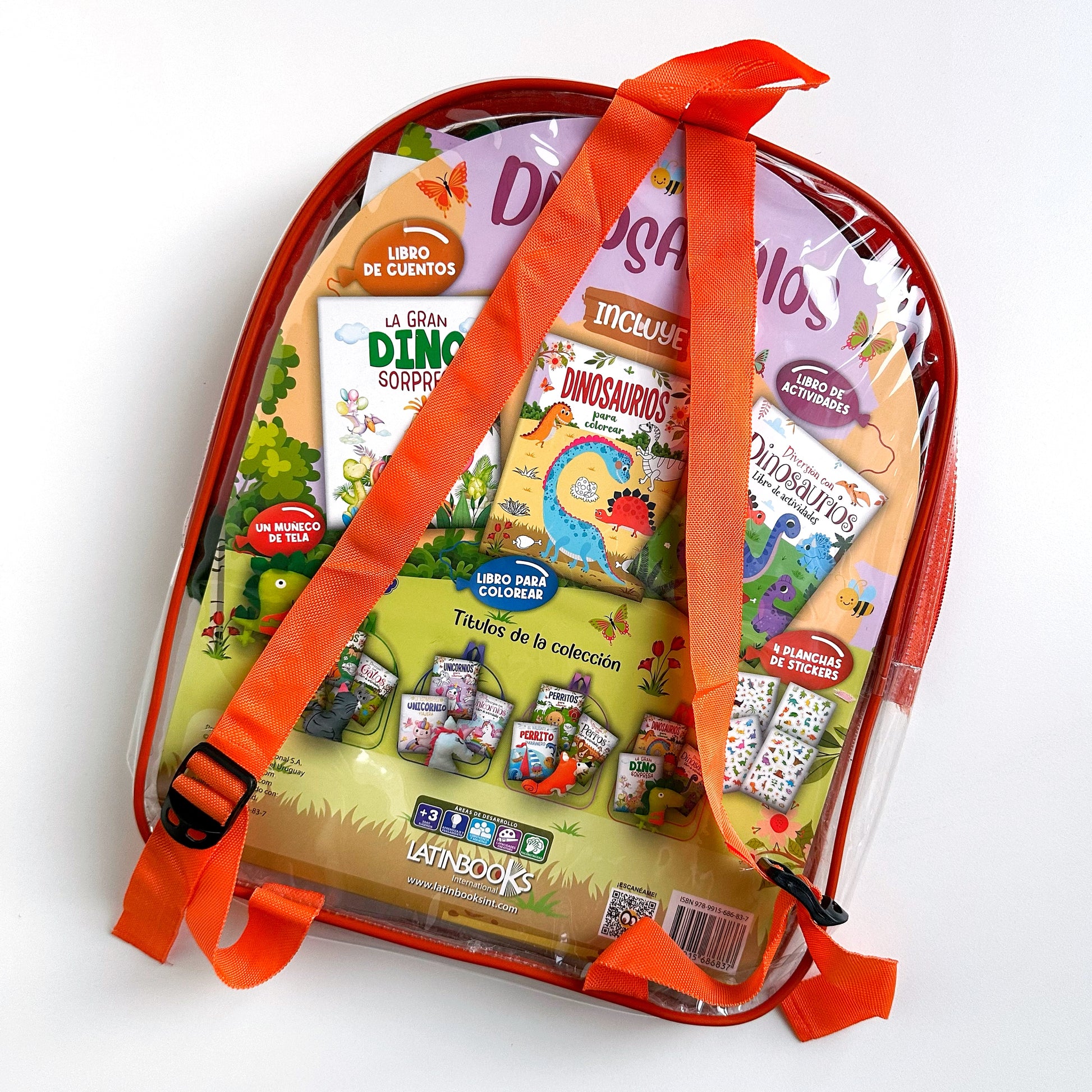 Todo lo que le encanta a los más peques en una sola mochila! 🦕 Ideal para llevar al jardín, de paseo o para regalar. Repleta de actividades, cuentos, stickers y un tierno peluche dino.